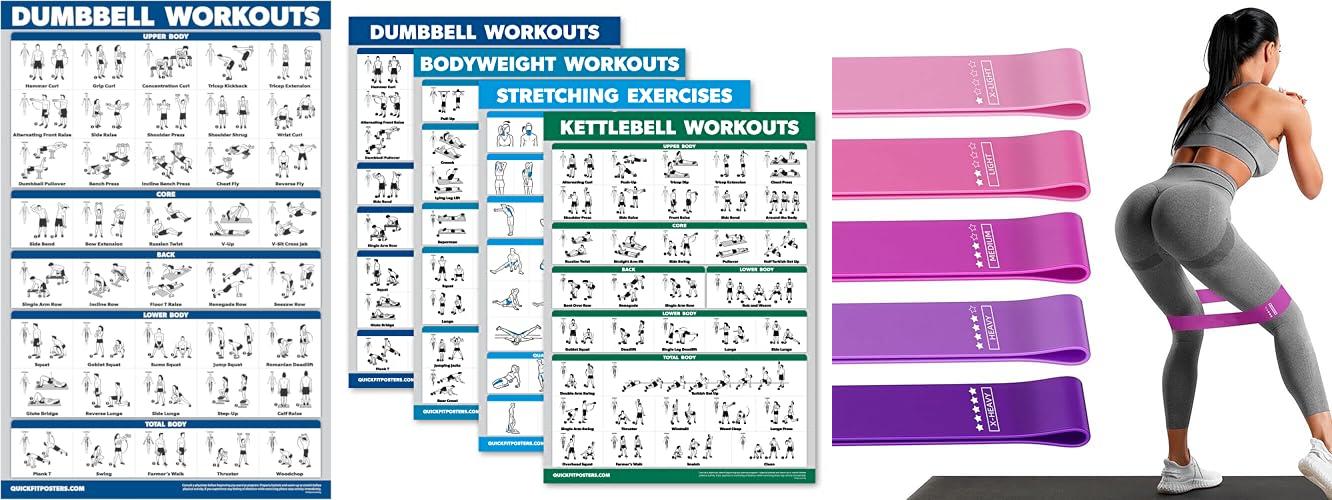 - Comprehensive set: You get 6 posters covering dumbbells, bodyweight, and stretching, with 2 for each.