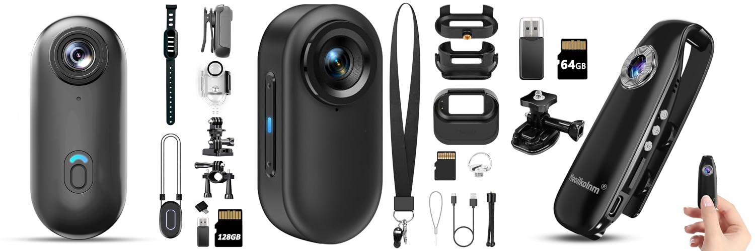 1. 4K Mini Body Camera 128GB – Action Body Cam with Audio & Video- Thumb Hands Free Waterproof Recording Wearable Cameras – POV Worn Portable Personal Camcorder – for Work Travel Pet Walk Swim