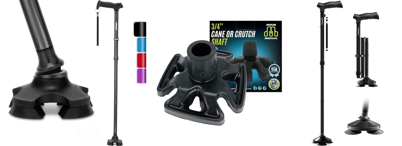• Pivoting Tip: The unique 4-pronged rotating base with non-slip rubber feet offers excellent stability and traction on various surfaces and terrains, making it a reliable companion.