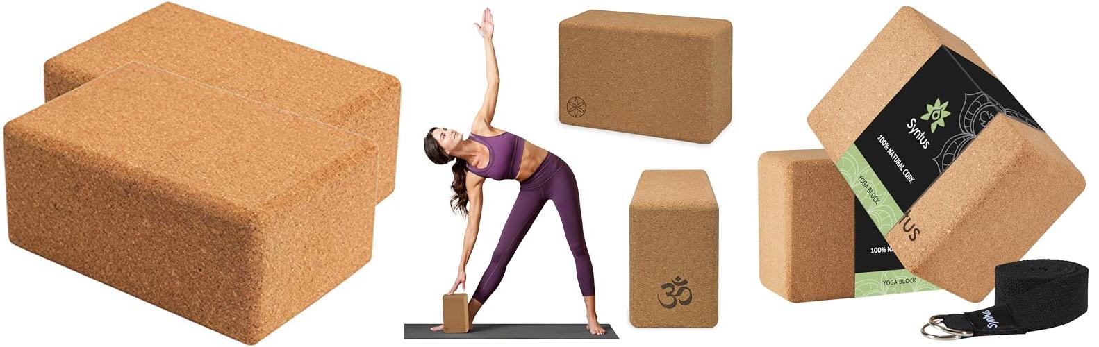 3. Syntus Cork Yoga Blocks and Strap Set