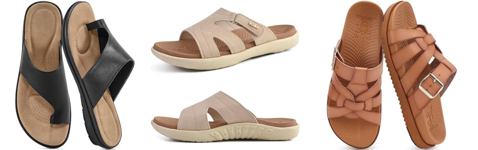 1. Reimferce Summer Flat Sandals for Women: Comfortable Walking Dressy Slides for 2025 – Ladies Orthopedic Casual Shoes Indoor Outdoor