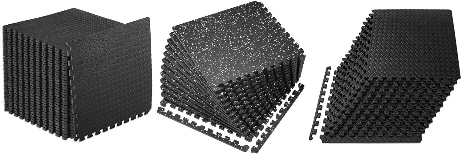 ProsourceFit Puzzle Exercise Mat ½ in, EVA Interlocking Foam Floor Tiles for Home Gym, Mat for Home Workout Equipment, Floor Padding for Kids, Black, 24 in x 24 in x ½ in, 48 Sq Ft - 12 Tiles