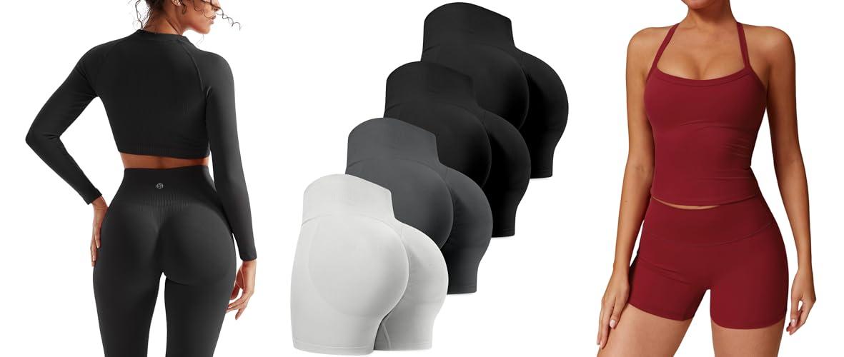 - Flattering Shorts: The high-waisted shorts offer a bit of tummy control and hug your curves perfectly. The hip-lifting design creates a flattering “peach butt” look. They are super soft, stretchy, and moisture-wicking.