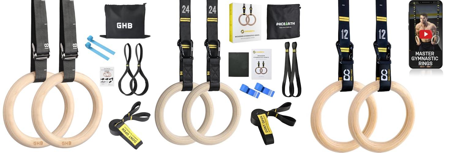 1. GHB Gymnastic Rings Wooden Gym Rings 1.25″ Olympic Rings Adjustable Straps Pull Up Rings Sets for Workout Bodyweight Fitness Training