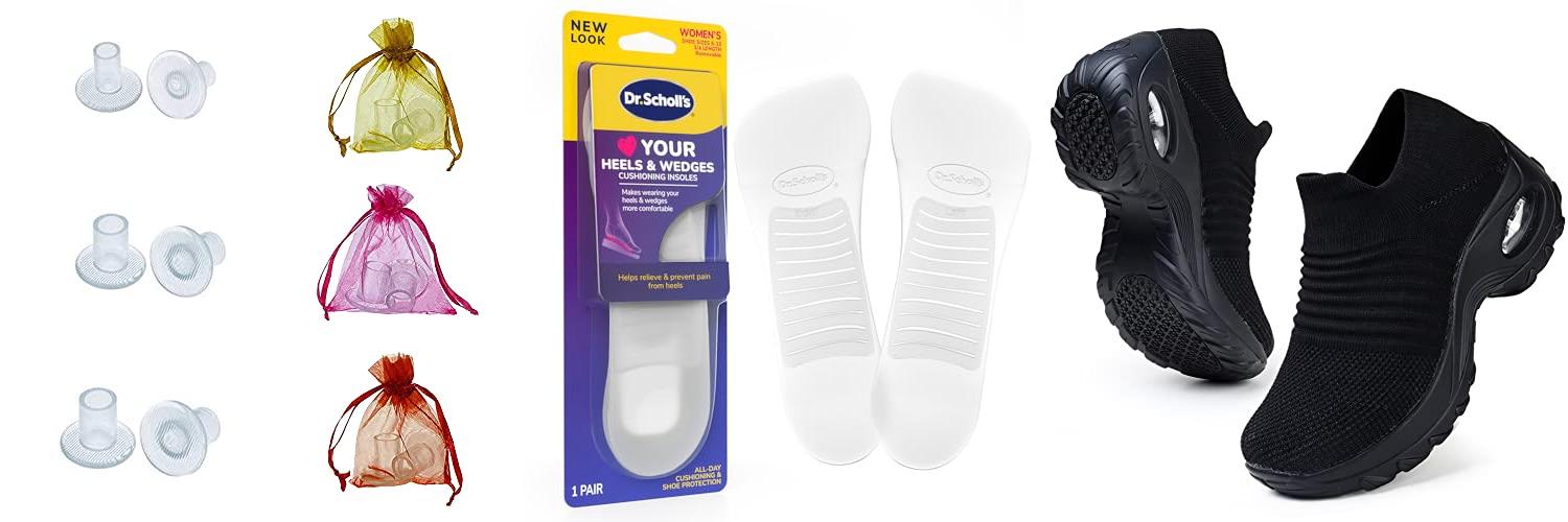 • Platform: A platform under the ball of your foot can reduce the angle of your foot, making the heel feel lower and more comfortable for walking.