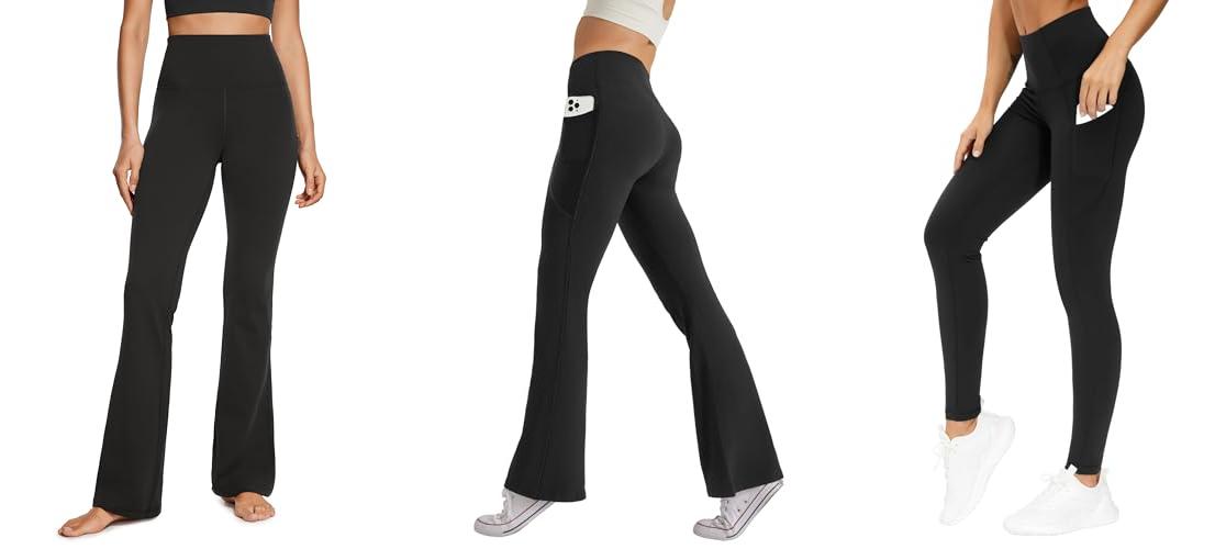 2. SEAJOJO Women’s High Waist Flare Yoga Pants Tummy Control Casual Bootcut Leggings with Side Pockets Black