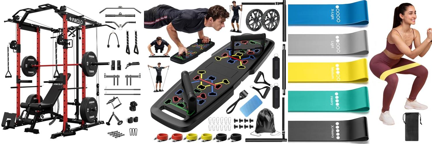 • For Beginners: Simple, easy-to-use items are best. Think resistance bands, a yoga mat, or adjustable dumbbells. These let you learn basic moves safely.