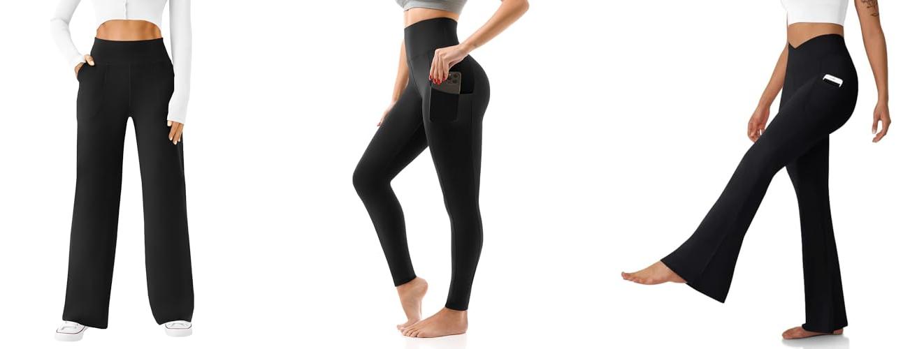 - Fit: Do you like them tight and supportive, or loose and flowy? Many styles exist, like leggings, bootcut, capris, and flares.