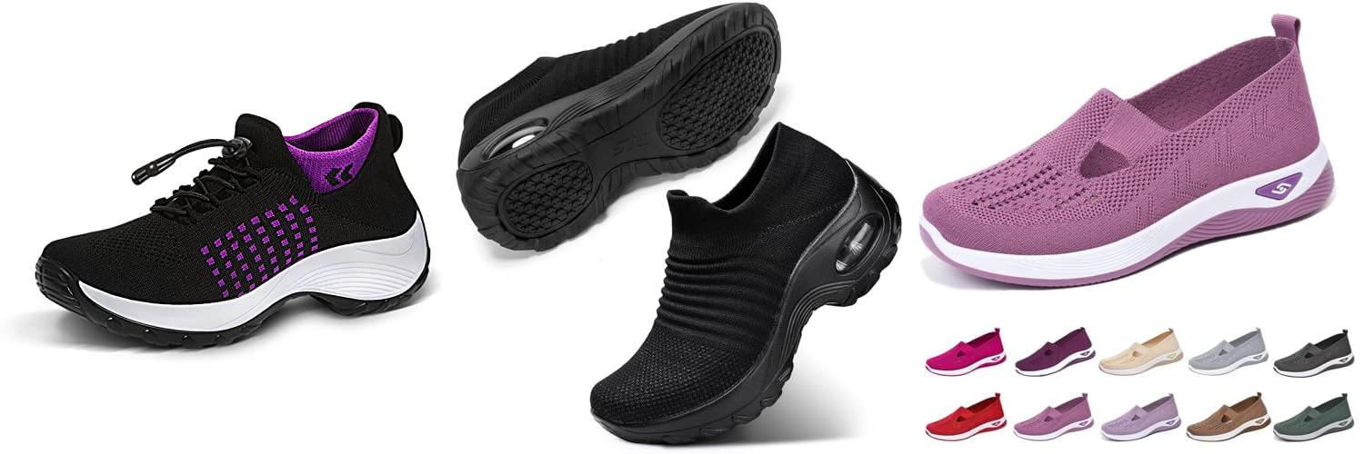 1. STUNAHOME Orthopedic Sneakers Breathable Women Walking Shoes Slip on Trainers Women’s Comfortable Casual Ladies Athletic Shoe Thick Bottom Black-Purple