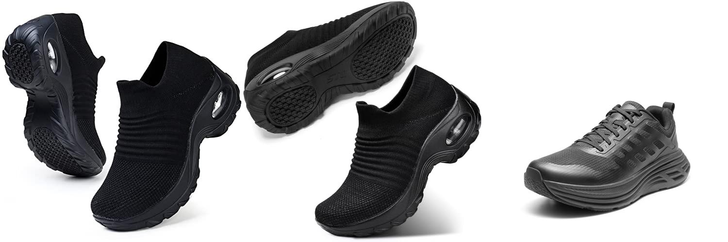 1. HKR Non Slip Work Shoes for Women Comfortable Slip On Platform Walking Tennis Sneakers All Black Size 5.5 US (1839 EU 35)