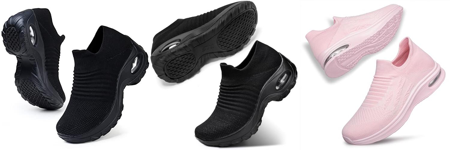 1. HKR Non Slip Work Shoes for Women Comfortable Slip On Platform Walking Tennis Sneakers All Black Size 5.5 US (1839 EU 35)