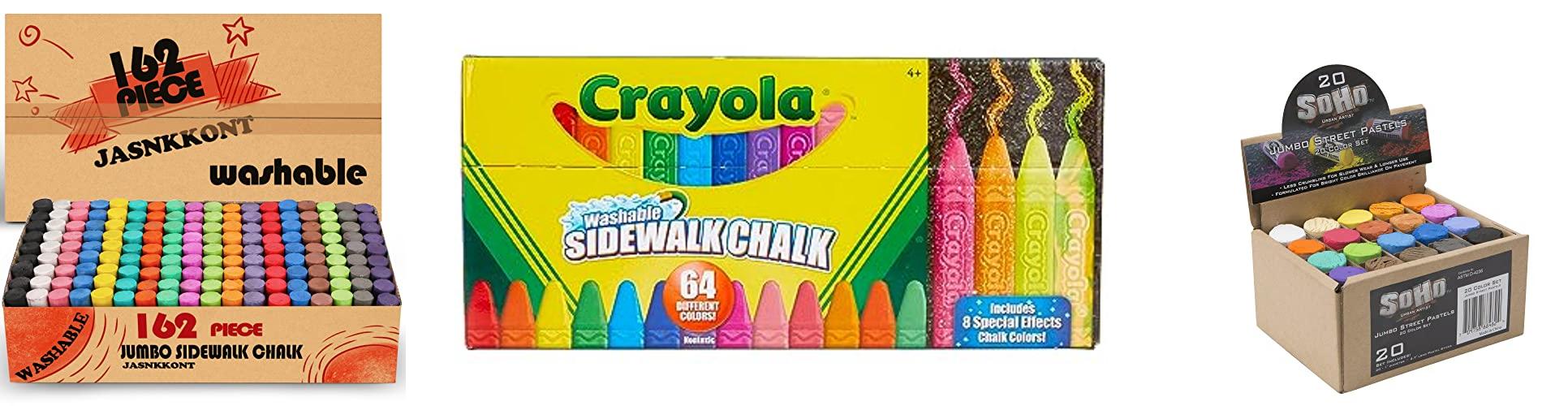 If you’re just looking for some fun, a basic set of bright colors will do. These are great for drawing simple pictures, hopscotch grids, or messages on the sidewalk.