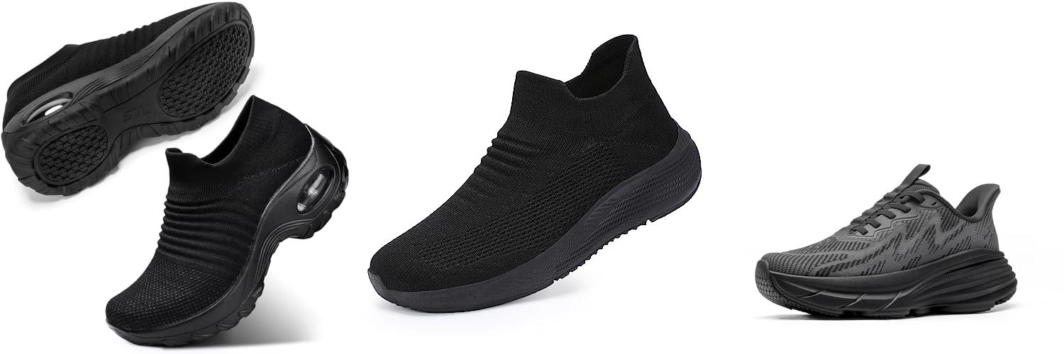 2. Womens Slip on Walking Shoes Comfort Lightweight Breathable Sock Shoe Non-Slip Mesh Casual Fashion Tennis Running Sneakers Black