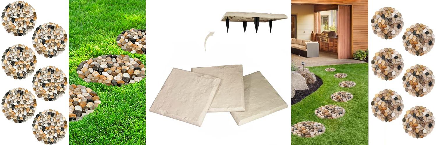 Transform your garden with the Sekcen 3 Pack Rubber Stepping Stones. These pavers look like real flagstone but are much lighter. They are perfect for creating beautiful pathways in your yard.