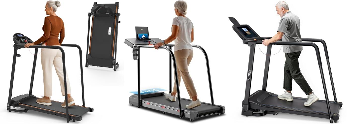 5. Redliro Treadmill for Seniors with Long Handrails – Recovery Machine for Walking 300 lbs Weight Capacity – Walking Treadmill Elderly with Desk & Cup Holder (Glossy Black)