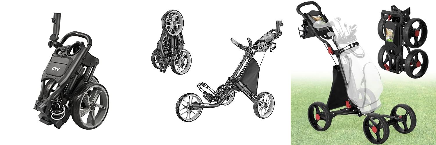 A good cart folds and unfolds quickly. This saves you time before and after your round. Look for simple mechanisms that don’t require a lot of effort. Some carts fold in one step, which is very convenient.