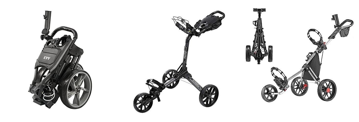 1. KVV 3 Wheel Foldable/Collapsible Golf Push Cart Ultra Lightweight Smallest Folding Size