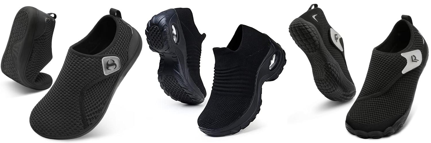 3. relxfeet Womens Mens Walking Shoes Adjustable Barefoot Shoes Minimalist Sneakers Wide Diabetic Shoes for Edema Swollen Feet (All Black