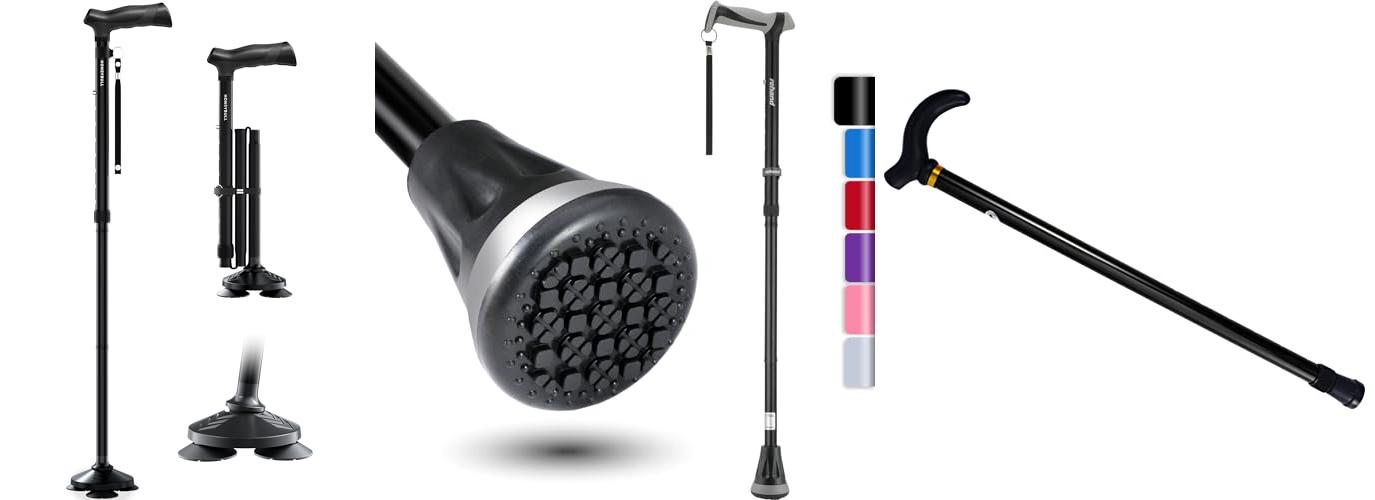 A: Quad canes, with four legs at the base, offer more stability and support than single walking sticks. They are often recommended for people who need extra balance.