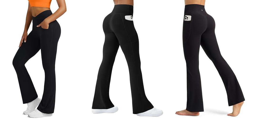 1. Boerfmian Flare Leggings for Women Yoga Pants with Pockets High Waisted Crossover Flare Leggings Bootcut Casual Yoga Pants Black
