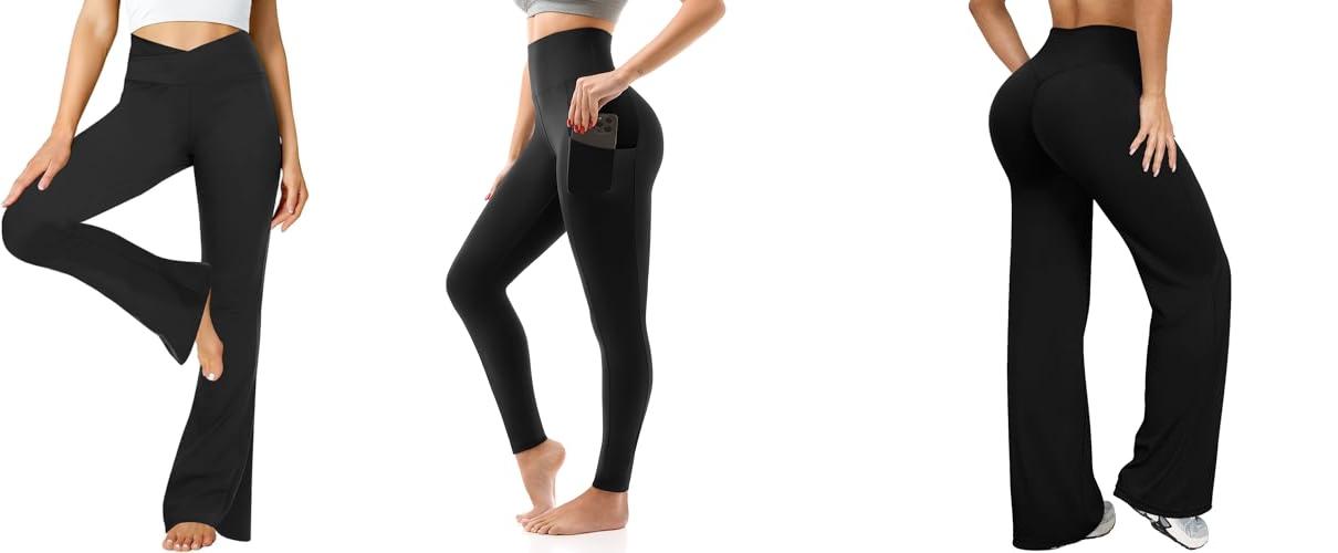 Meet your new favorite go-to pants: the ZOOSIXX Flare Yoga Pants for Women in classic black. These aren’t just any leggings; they’re designed to make you feel comfortable and look amazing, whether you’re hitting the yoga mat or heading out for the day.